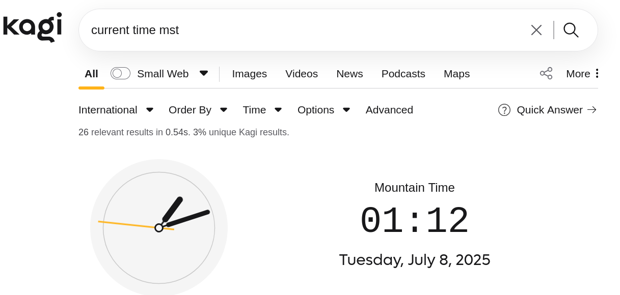 rinesen I just found this when I wanted to report something similar. I'm in Germany and searched for "current time mst": The time is off by 1 hour. Clicking the first link:
