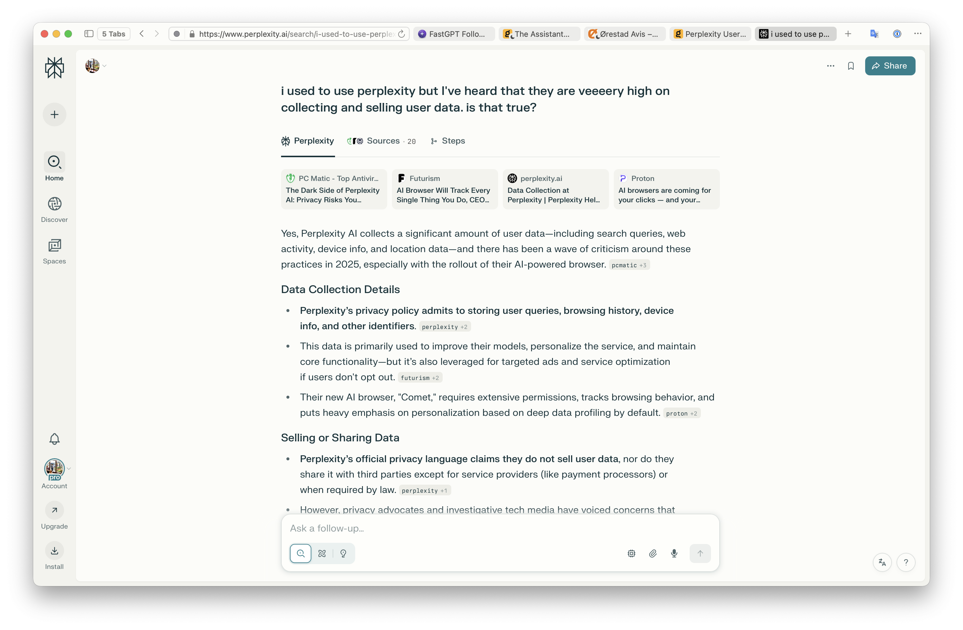 To be blunt, @Vlad that is a very inaccurate view of things and shows that you have not tried actually using Perplexity. Which is also a common critique I have of the Kagi/Orion feedback forums - you guys seem to never-ever really explore and use other other services with full lungs, even when presented with clear examples. Please don't misunderstand, I wish that Kagi succeeds in this, otherwise I wouldn't be writing this. I wish for you folks to be opinionated experts, not just opinionated ๐