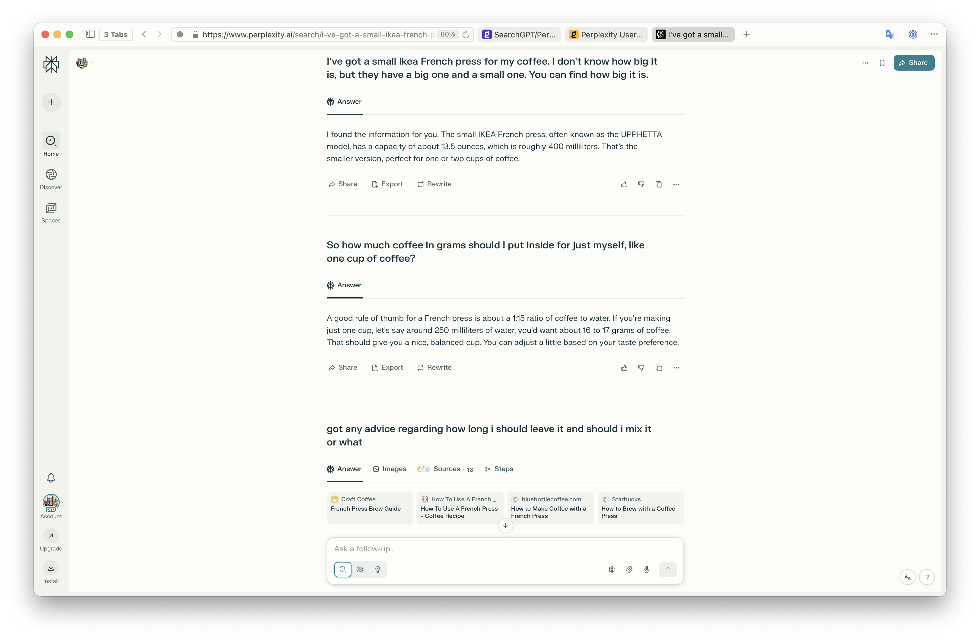 - While the answer style can be personalized to make it more succinct (which I've immediately done), I've found them already significantly shorter than standard GPT, which is crucial, as nobody wants to read a novel instead of a serp page. The key is to balance the ux for speed the user percieves.