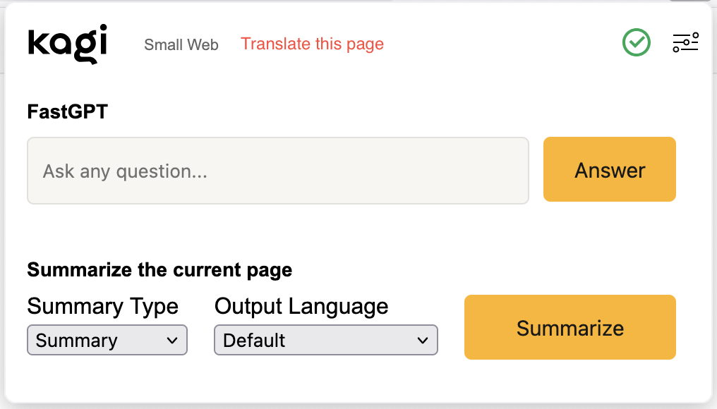 There are a couple of unofficial firefox addons that integrate kagi translate. It would be better if this came officially from kagi.