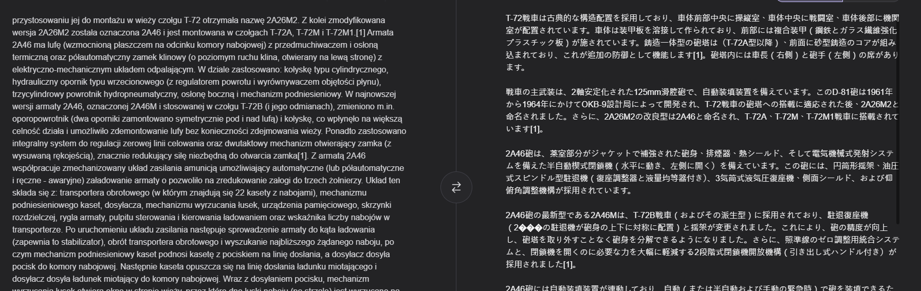 Additionally, this part dedicated to translation is separated into two: the corrected text above and the correction suggestions below, further complicating visualization.