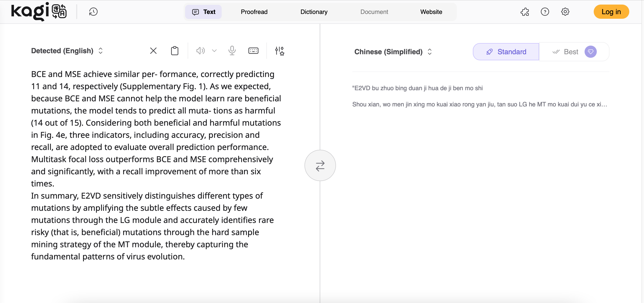Perhaps this is too specific to be useful, but I think this is an expression of a more general (and rather serious, IMHO) flaw in Kagi translate that I whose source I would hope to help track down with this example: