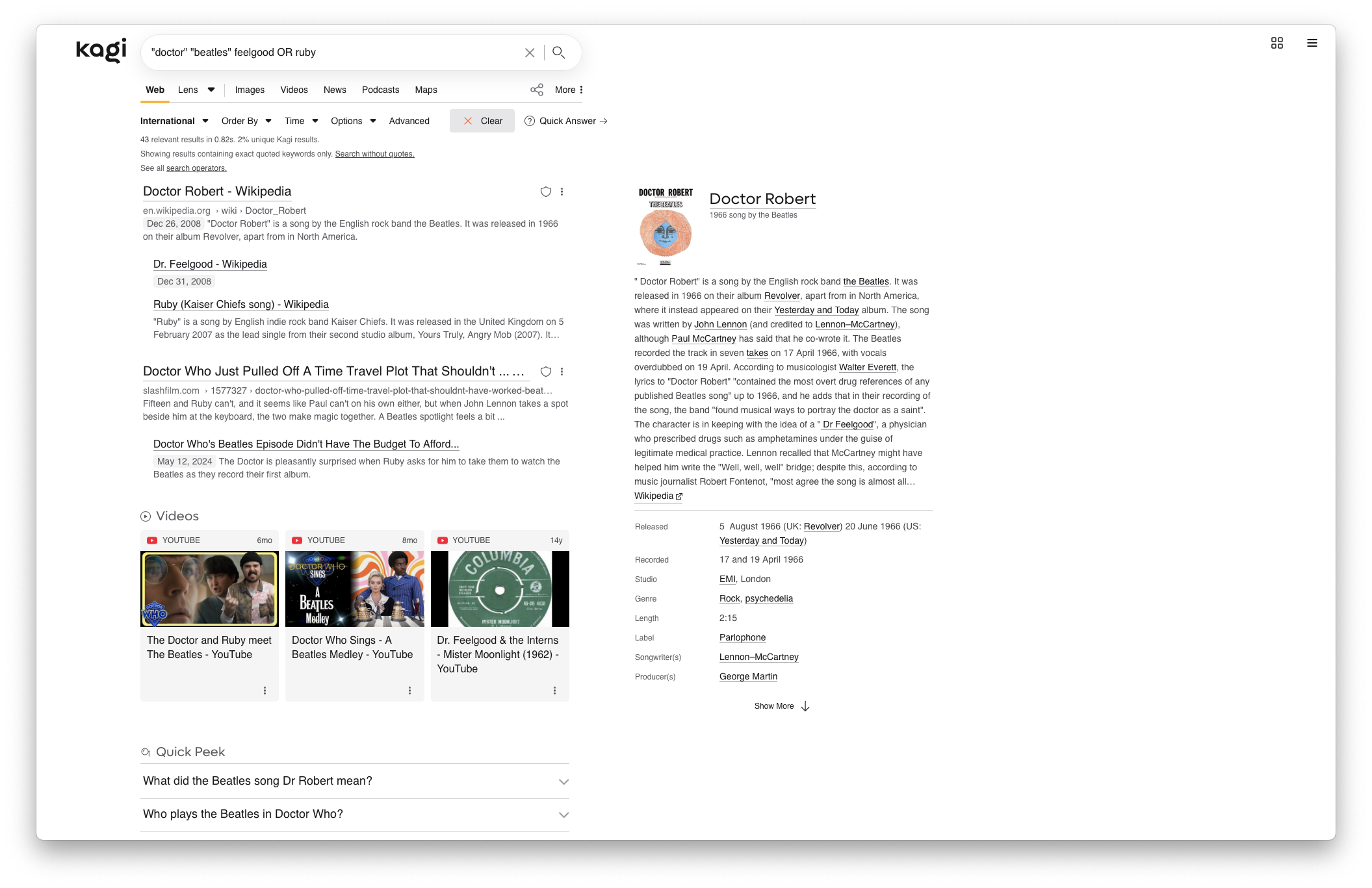 However, my issue is primarily with search operators, especially mixed Boolean AND and OR searches with parentheses. The major search engines seem not to respect the AND and OR searches. Kagi seems a little better but still isn't perfect. For example, the following search: