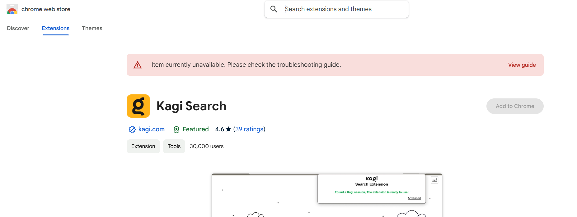 Today I had to download ungoogled-chromium to work on something because Firefox doesn't work with the site I was trying to use. Long story short noticed the following (I've included a screenshot showing that the Kagi extension is not available in the chrome web store).
