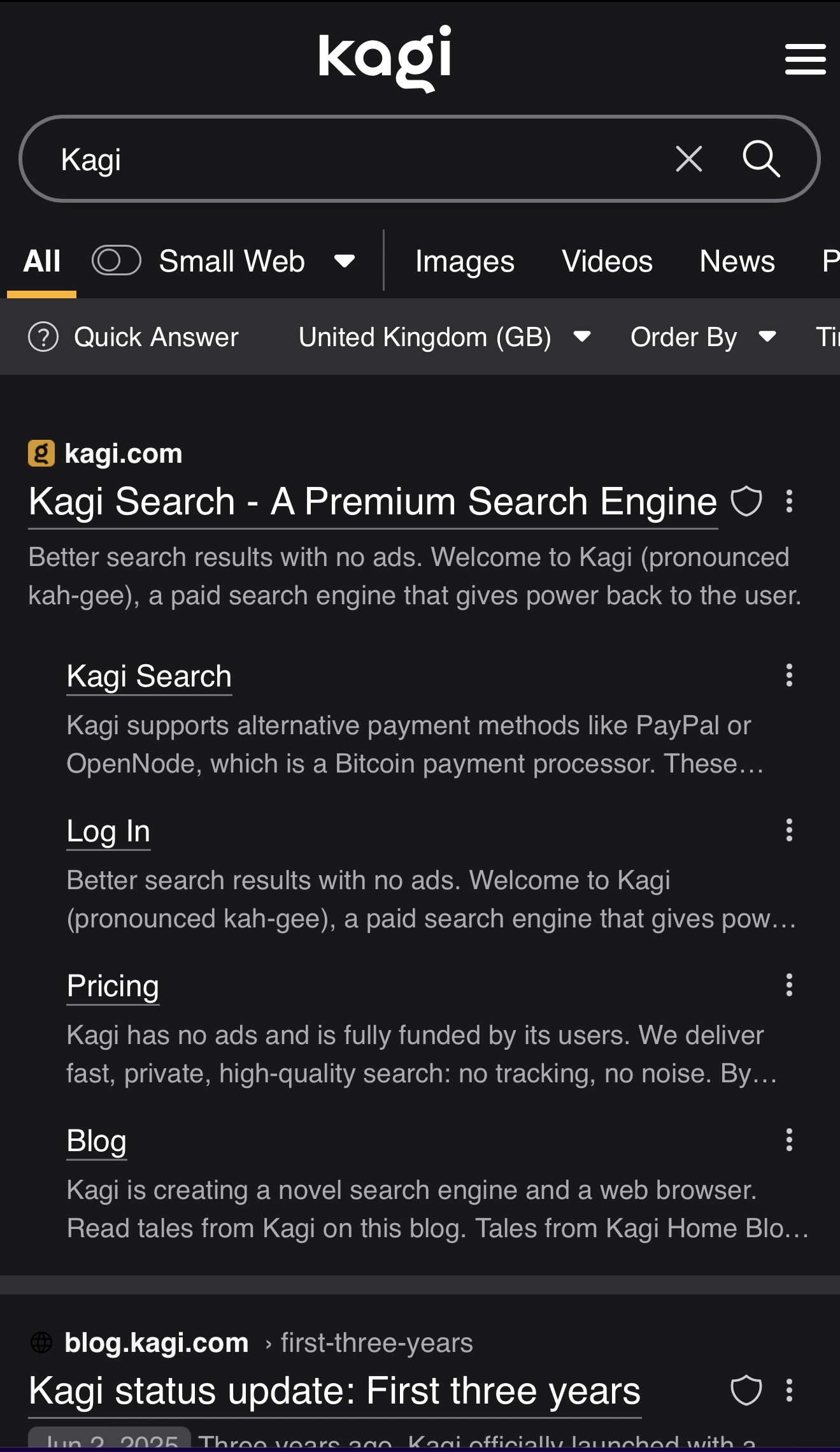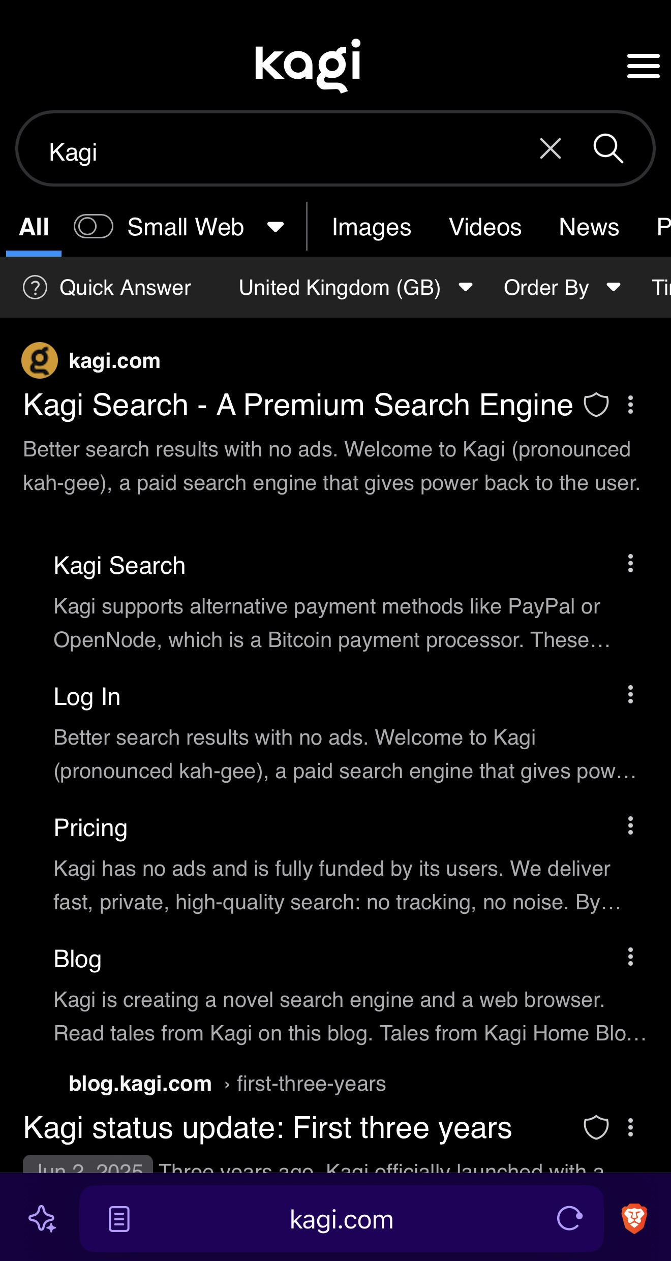 I’m using Kagi Search on my iPhone 16 Pro Max, the latest Brave browser version and also the latest iOS version (18.5), and I’ve also tried Safari. The Kagi logo doesn’t appear centred when searching, regardless of whether I use Custom CSS.