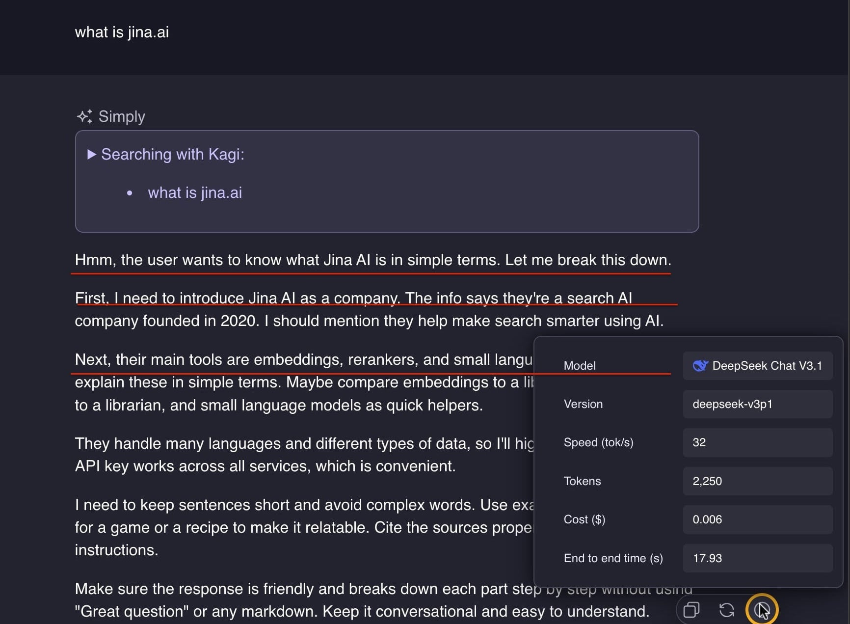 Using this AI model results in a very verbose output, since it is dumping all its internal reasoning. It seems to be a closed but not open </think> tag
