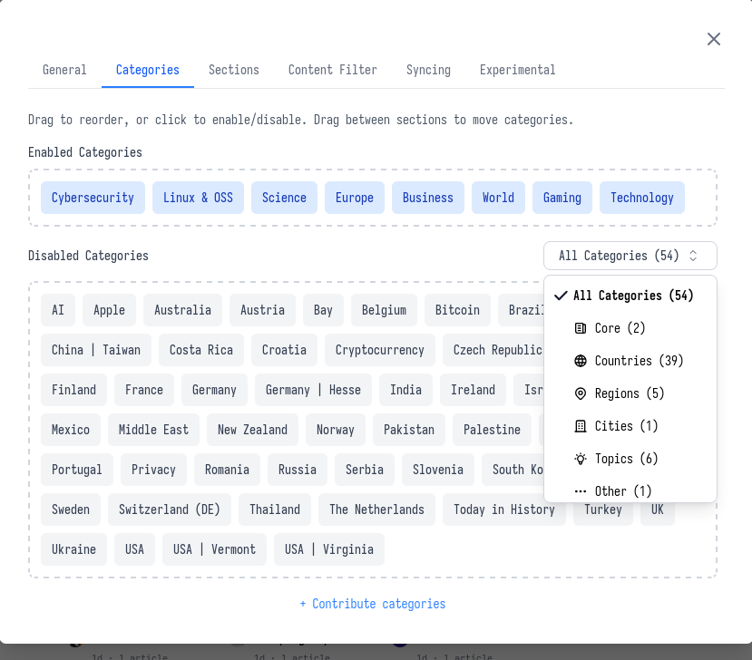 Currently, there is no way for users to tell which Kagi News feeds are community-made and which are maintained by the Kagi team ("core" feeds, e.g. technology/world/business). While the drop-down in the category selection does include a "core" category, it is not clear that non-core categories are community-maintained (see below).