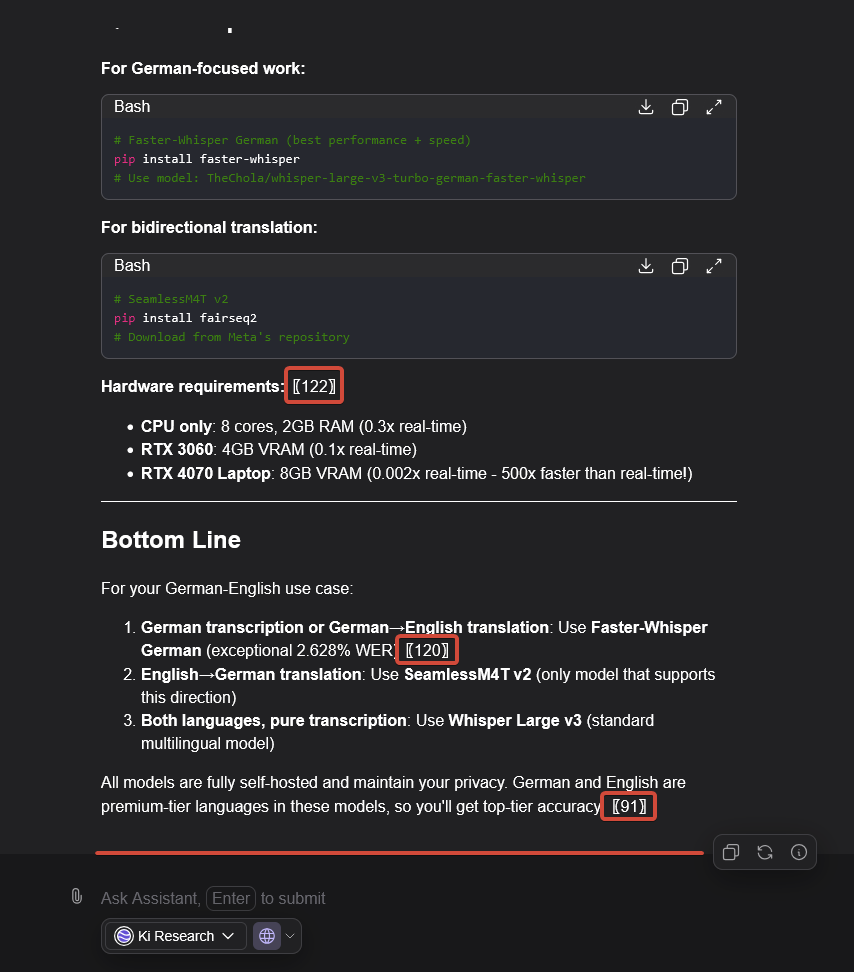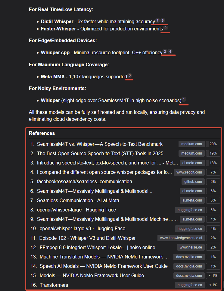 Normally Ki or any other model would reference clickable sources, but in those two examples I gave, it didn't link them correctly and just gave me a simple 〚45〛〚46〛〚47〛 with no sources at all