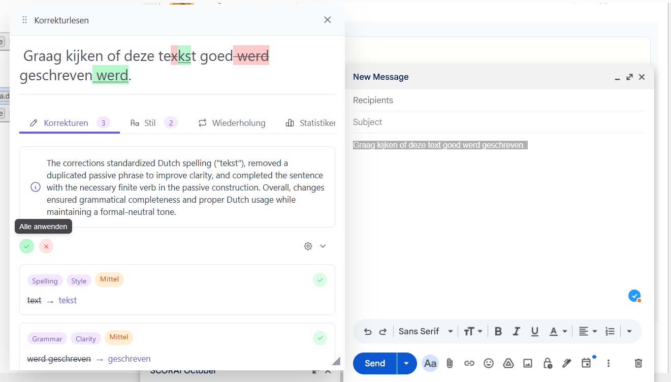 Giorgio hey! it's actually a missing feature, apply all only applies the corrections in the context of the popup - not to the page. applying to the actual text will be shipped in the next update