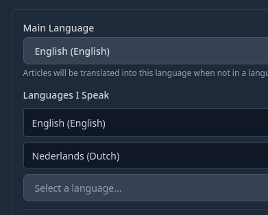In the language content section, I should be able to select a default language (eg English) and separately multiple languages I also understand (don’t want translated).