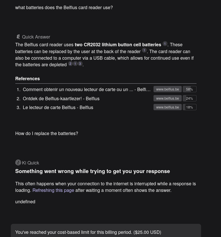 if you've used up your AI usage but 'continue to assitant' from Quick Answer, you'll get the error from Ki Quick that it was interrupted (which yeah.. makes sense, I get why it's doing that. but considering we're already seeing the ai usage maxed notice, the error shouldn't be shown to the user