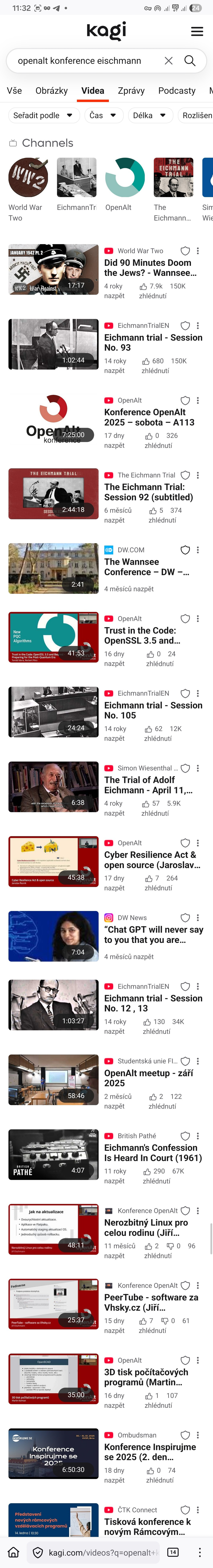 Context: Eischmann held several lectures at OpenAlt conference, but when I search for: „konference openalt eischmann“ in videos, I get twelve results about the second world war, which only contain words Eischmann, but no konference nor openalt. Only after that come results that have all three words in the title of the video or channel.